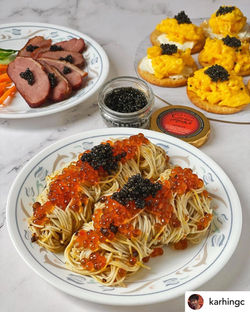 ![]() Pasta with Caviar | ![]() Wine and Caviar #elevate your staycation experience | ![]() Croissant with Caviar #breakfast |